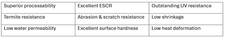 HDPE (black) 6B is a high-density polyethylene jacketing compound in black, developed using CNB’s proprietary bimodal process technology. This innovative process enables the creation of polymers with properties that exceed traditional melt flow rate and density limits, resulting in enhanced processability, minimized shrinkage, excellent mechanical strength, and high resistance