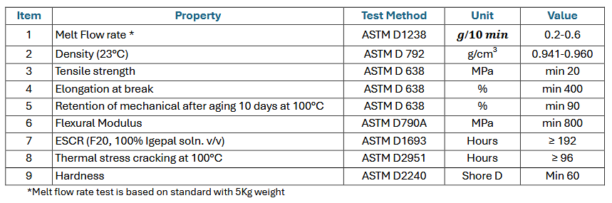 HDPE 9410 is best designed for Pipes, Micro Ducts and similar pipes manufacturing processes. Customization is also possible based on customer special requirements. Based on variation of Density it can be used for PE80 to PE100 even PE100+, suitable for different types of pipes, including pressure pipes, gas pressure pipe systems where flexibility and coilability is needed. Or for larger diameters, thick wall pipe, it can be even processed for the whole range of diameters.